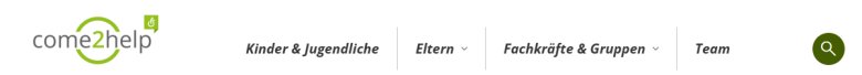 In der oberen Zeile steht als erstes das Logo von come2help. Wenn man das Logo anklickt, kommt man immer auf die Startseite.